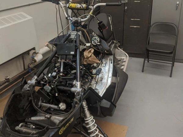 The motor will be setup to operate the snowmobile with a sprocket and chain system. The system is 1 to 1 to get a baseline of performance for the sled